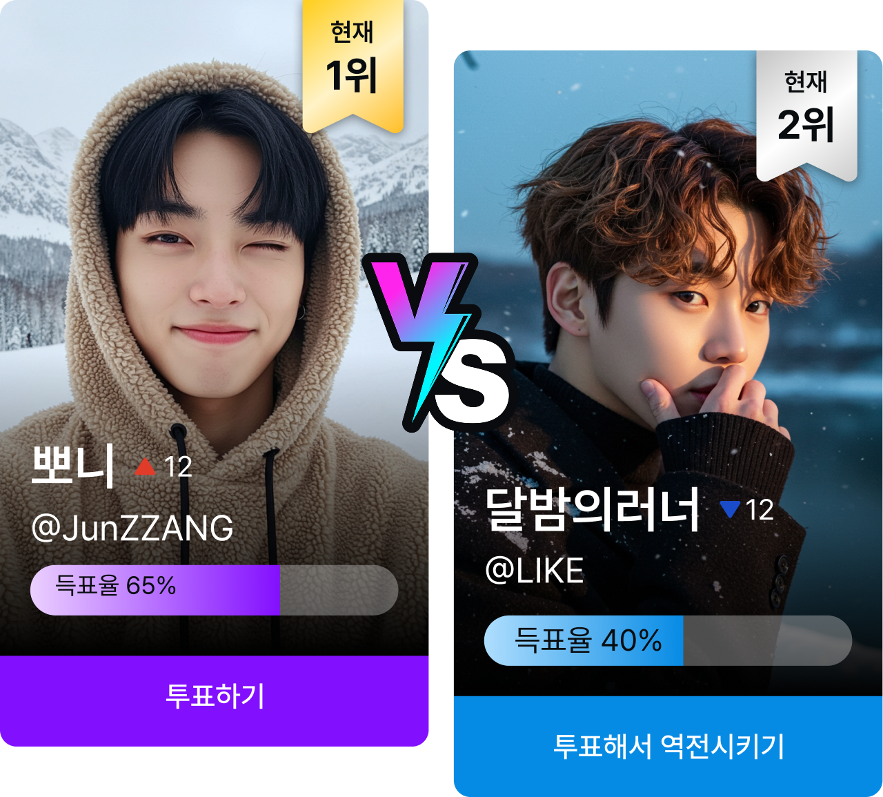 유저들의 투표로 진행되는 뜨거운 스타대결과 랭킹전을 통해